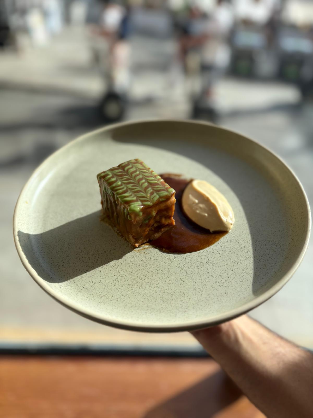Los fans de Alien entenderán el porqué del nombre de esta “barrita” energética futurista, consistente en un pan tramezzini con paté de secreto a baja temperatura 16 horas, cubierto de cortezas y gel de mango agripicante.